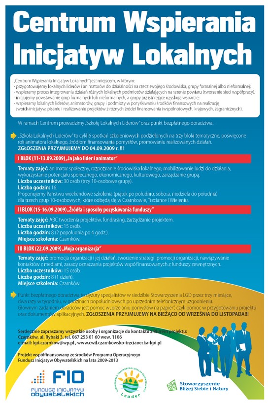 „Szkoła Lokalnych Liderów” oraz punkt bezpłatnego doradztwa.